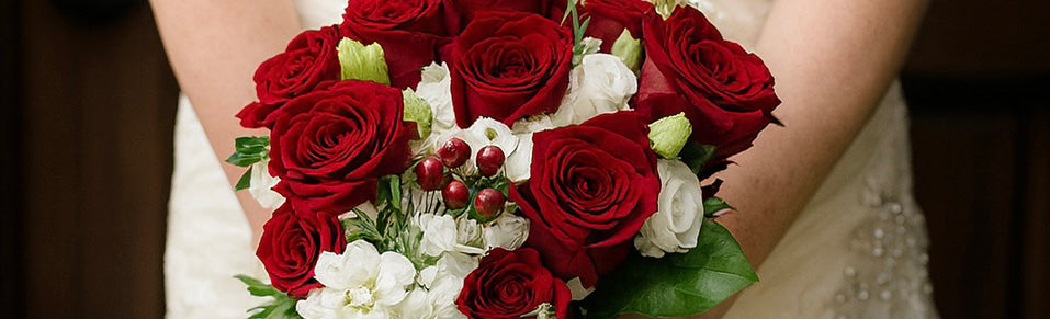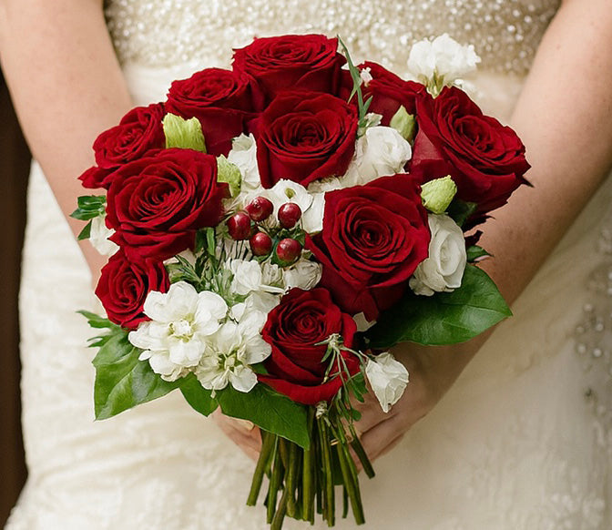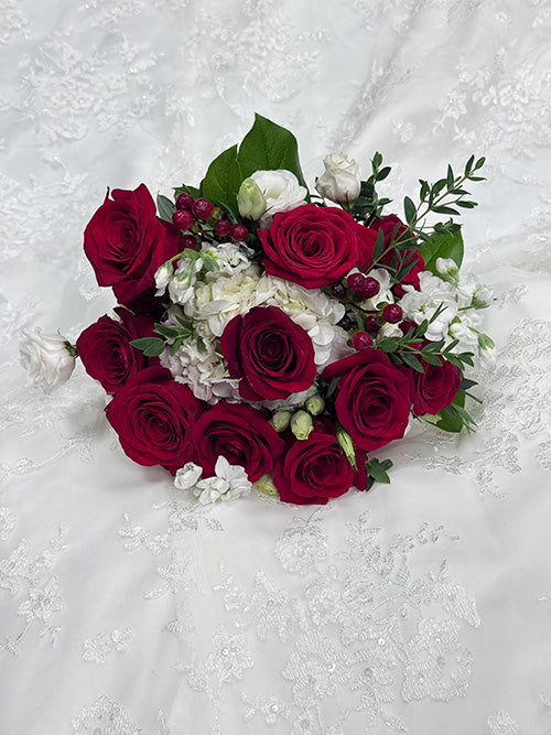 COLLECTION INCLUDES OPTIONS FOR THE FOLLOWING FLORAL PRODUCTS: Bridal Bouquet, Bridesmaid Bouquet, Corsage, Boutonniere, Centerpiece Design Dish, Bud Vase, Loose Blooms, Box of Rose Petals, Italian Ruscus bunch or an Archpiece.