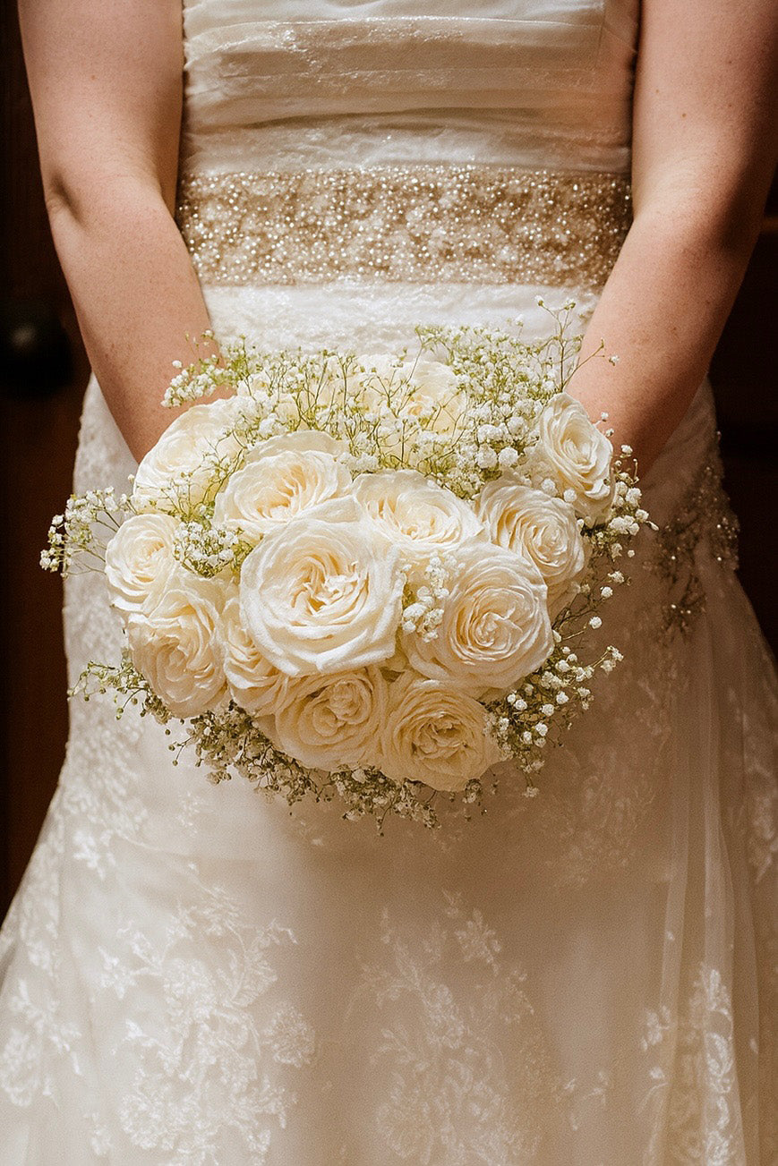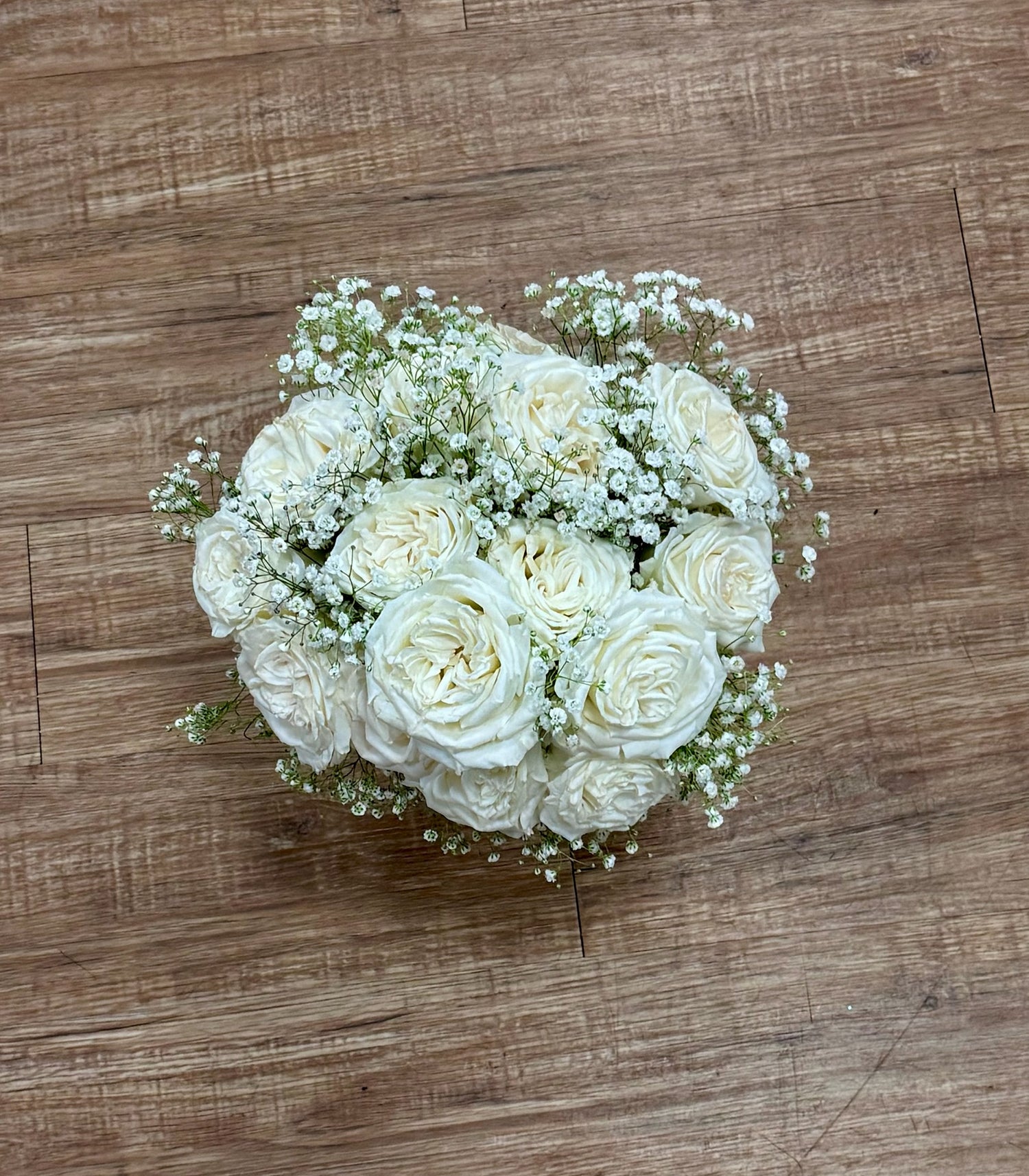 Discover timeless beauty with the Classic Elegance Collection, a curation of exquisite all-white florals. This sophisticated collection highlights the soft texture of baby's breath and the classic grace of white roses, creating an arrangement that is both clean and captivating. With no fuss and no distractions, it embodies a soft, modern romance that is ready to elevate any bridal look.