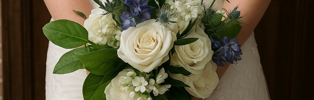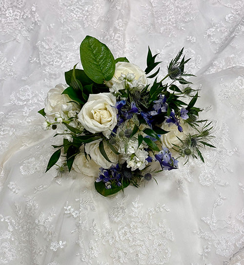 For your "something blue," this collection captures the romance of a hopeful, blue-sky day. Lush greenery and graceful white flowers are artfully blended with alluring shades of blue for a dreamy effect.